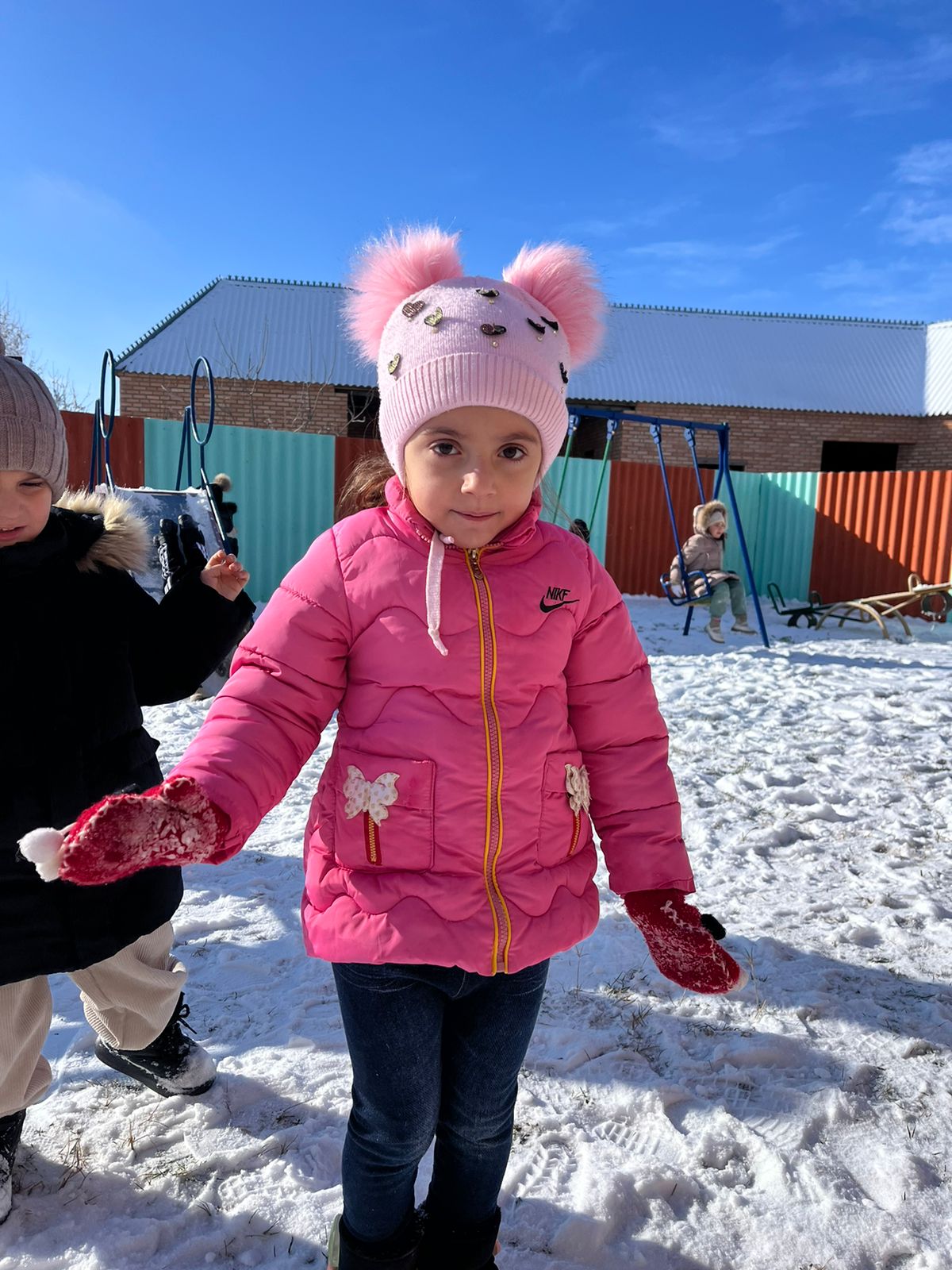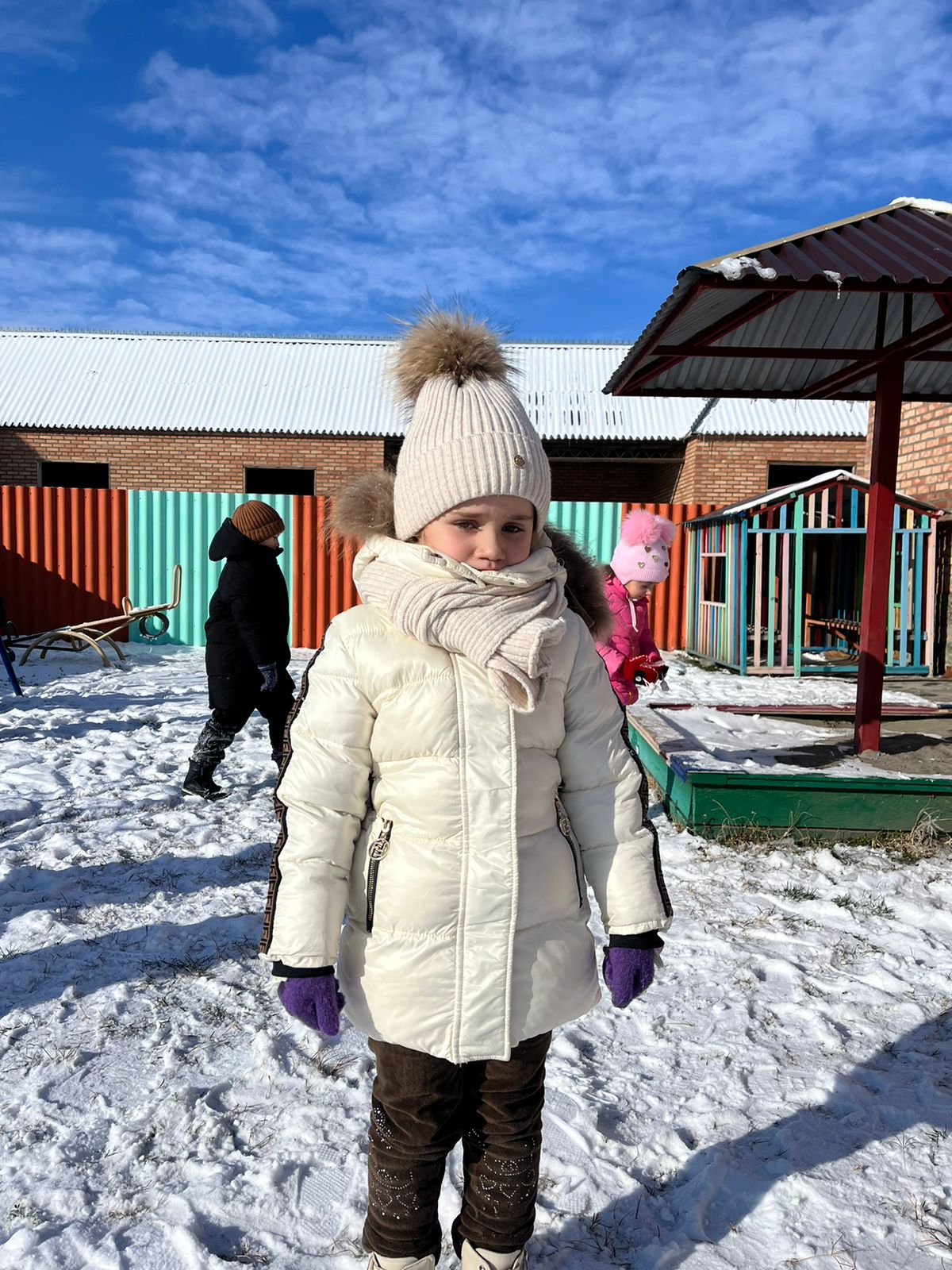 Наконец выпал снег и дети вышли на прогулку, поиграли в снежки, слепили снеговика.