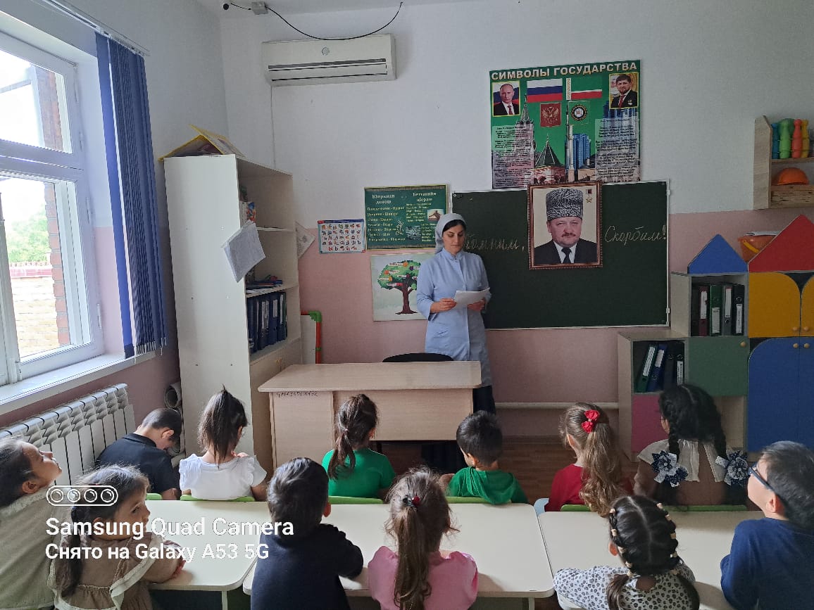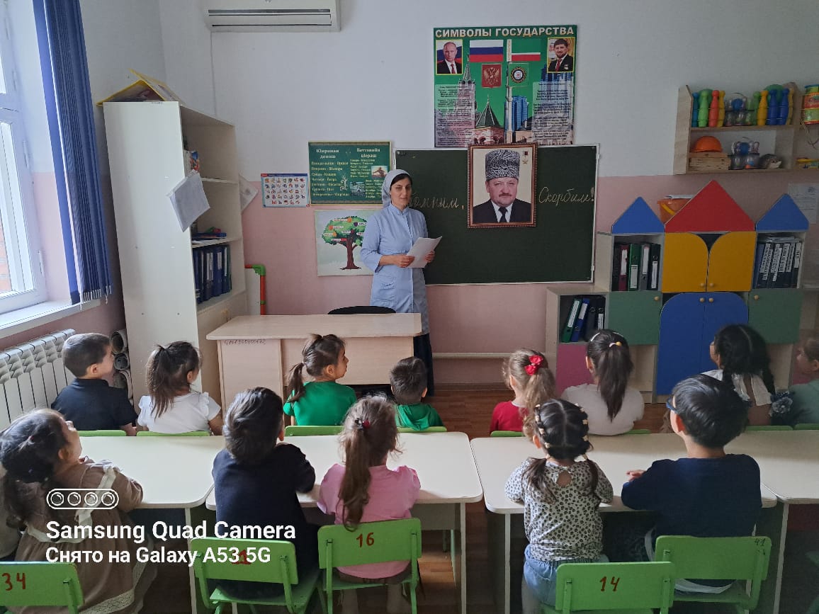 Беседа в старшей группе "Любим и Скорбим" в память о Первом Президенте ЧР А-Х. Кадырове.
